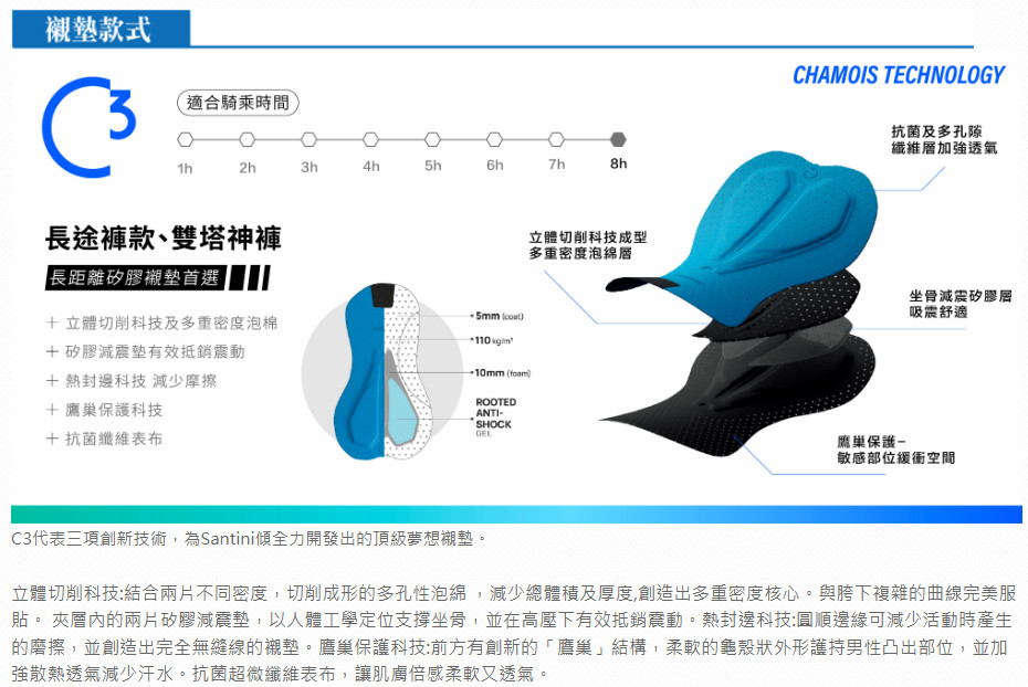 適合溫度+18℃/+35℃版型職業緊身 襯墊C3